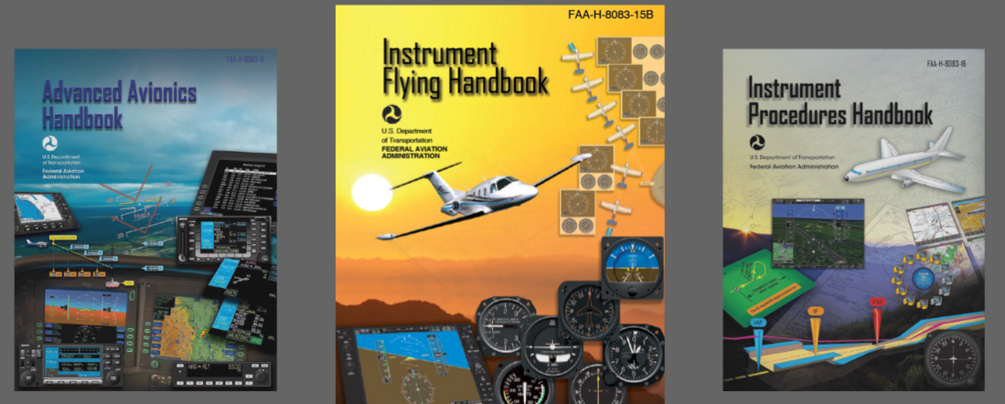 Buy all three instrument books together and save $10 over purchasing them separately. Please note that the the instrument procedures handbook has been superseded by a newer version produced in 2017. Also the Advanced Avionics Handbook is no longer listed on the FAA website as an available manual.